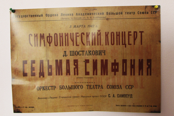 Композитор Дмитрий Дмитриевич Шостакович работал над Седьмой (Ленинградской) симфонией в Самаре (тогдашнем Куйбышеве). Работа была закончена 27 декабря 1941 года, а 5 марта 1942 года состоялось первое исполнение симфонии, это событие произошло на сцене нашего театра (тогда - Дворца культуры им. В.В.Куйбышева).
